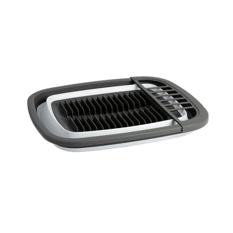 Magnifique égouttoir en silicone avec plateau, le tout rétractable pour un gain de place notable dans votre bateau ou camping-car.