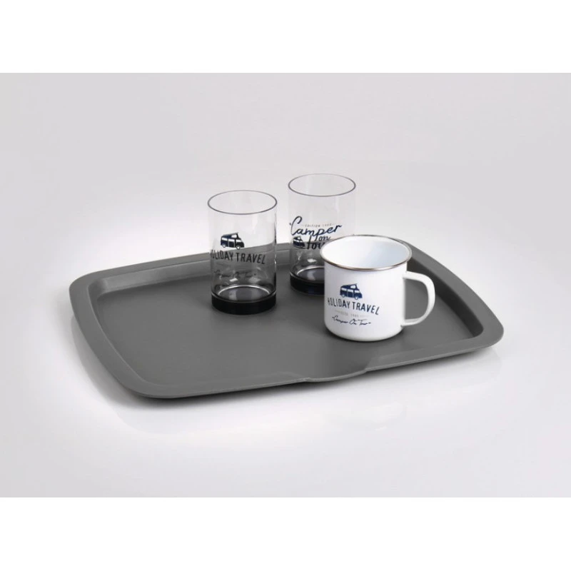 Tout en sobriété, CAMP4 vous propose ce magnifique égouttoir qui est pliable dans sa hauteur de manière à le ranger plus facilement dans vos placards lors de vos voyages en caravane ou fourgon aménagé. Vous pourrez y loger vos assiettes, plats, couverts et autres ustensiles de cuisine. Vous disposerez également d’un plateau à positionner dessous votre égouttoir mais que vous pouvez utiliser également pour transporter plus facilement vos repas ou boissons.