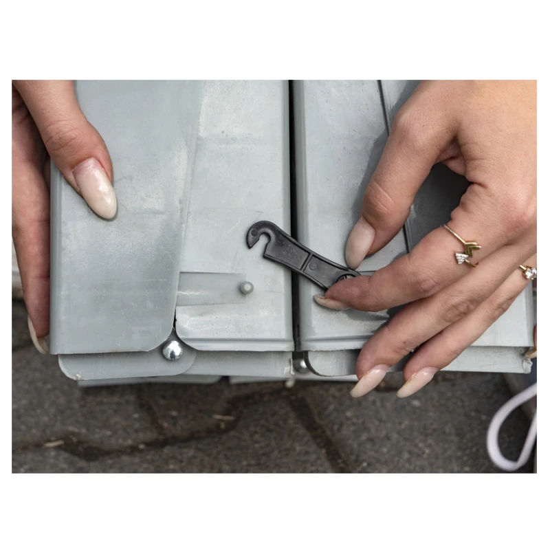 La rampe se replie entièrement et se sécurise via un crochet l’empêchant de s’ouvrir. Les marches sont rainurées pour assurer une descente et une montée en toute sécurité sans risque de glissade.