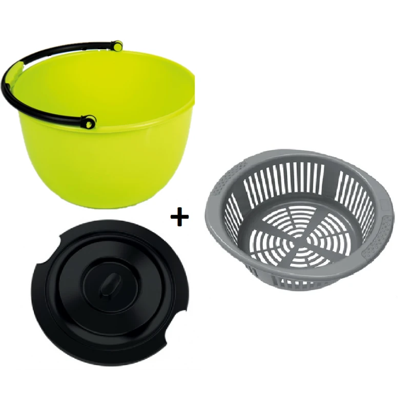 Pack comprenant un seau de grande capacité, un égouttoir ainsi qu’un couvercle pour un stocker du matériel, nettoyer facilement ou égoutter votre linge. Ensemble indispensable à bord du camping-car ou du bateau.