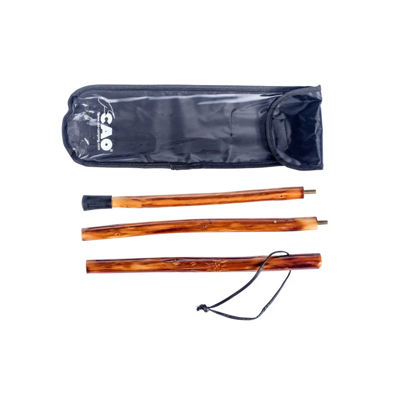 Bâton de marche en bois pour la randonnée ou ballades au camping de CAO OUTDOOR, cet équipement présente l’avantage de démontable en 3 sections.