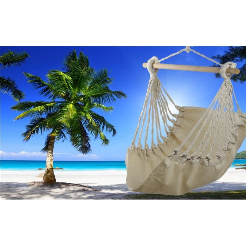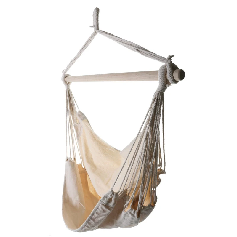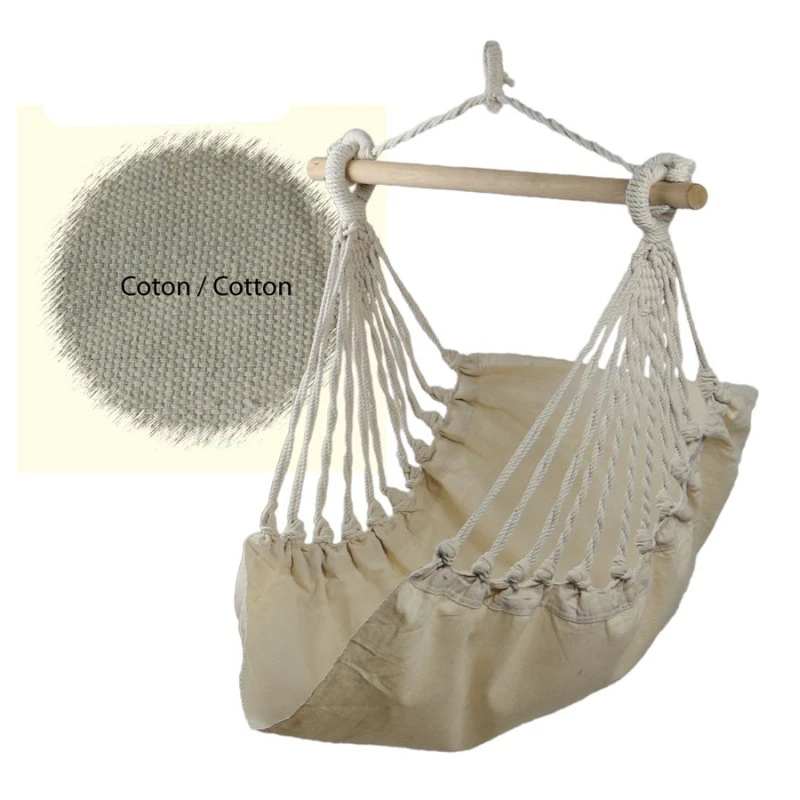 Hamac chaise position assise CAO OUTDOOR avec écarteur bois et tissu coton idéal pour le plein air au camping, en bateau ou camping-car.