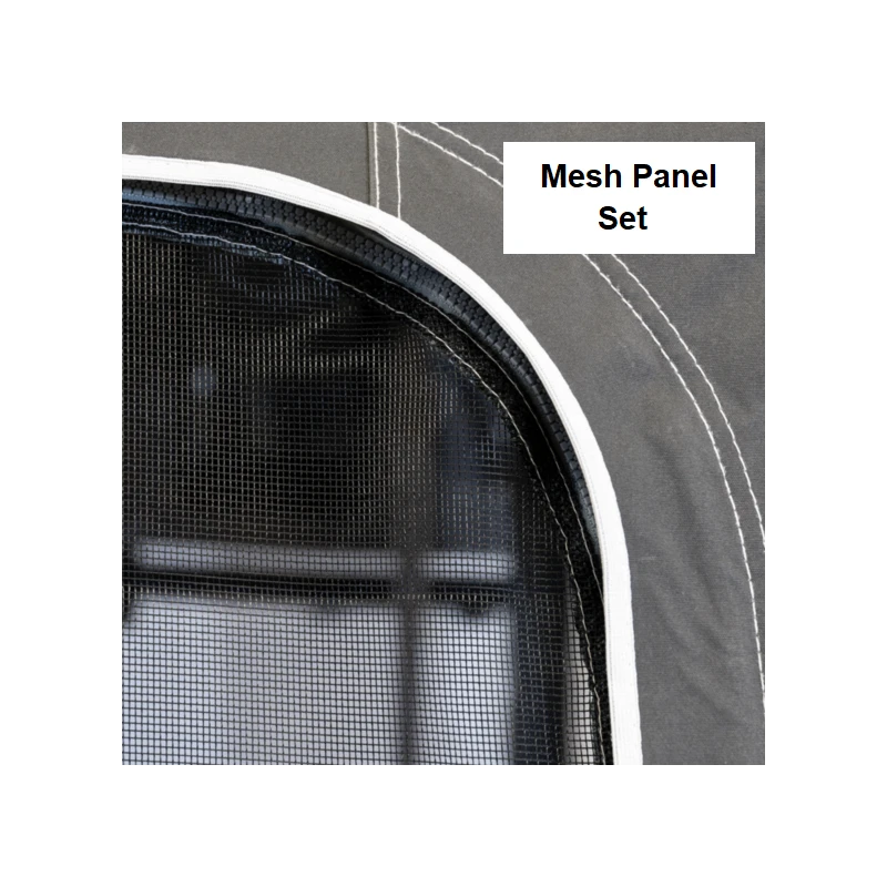 Avec ses 2,4 m de large, ce sas est idéal pour ranger votre matériel de camping ou déjeuner à l’abri du vent. Pour plus d’intimité, l’auvent est doté de rideaux permettant ainsi d’obscurcir les fenêtres transparentes présentes dans le sas.