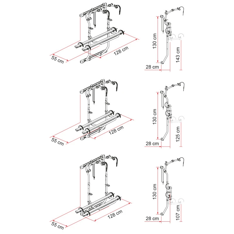 Pratique, l’installation des rails support vélos peut se faire à deux hauteurs : soit les rails à 107 cm, soit les rails 143 cm.