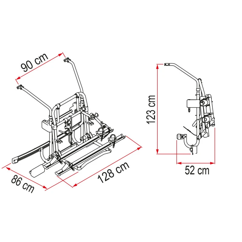 Ce modèle de Carry-Bike est présenté sous sa version Lift destiné au transport des vélos électriques. Sa structure basculante descend de 77 cm pour pouvoir décharger et charger facilement vos vélos électriques. Livré de série avec 2 rails de 2 bras, le Carry-Bike Classe V peut transporter jusqu’à 2 vélos et supporter une charge de 60 kg. Sa version Lift E-Bike est également livré avec déport de plaque et feux de signalisation.