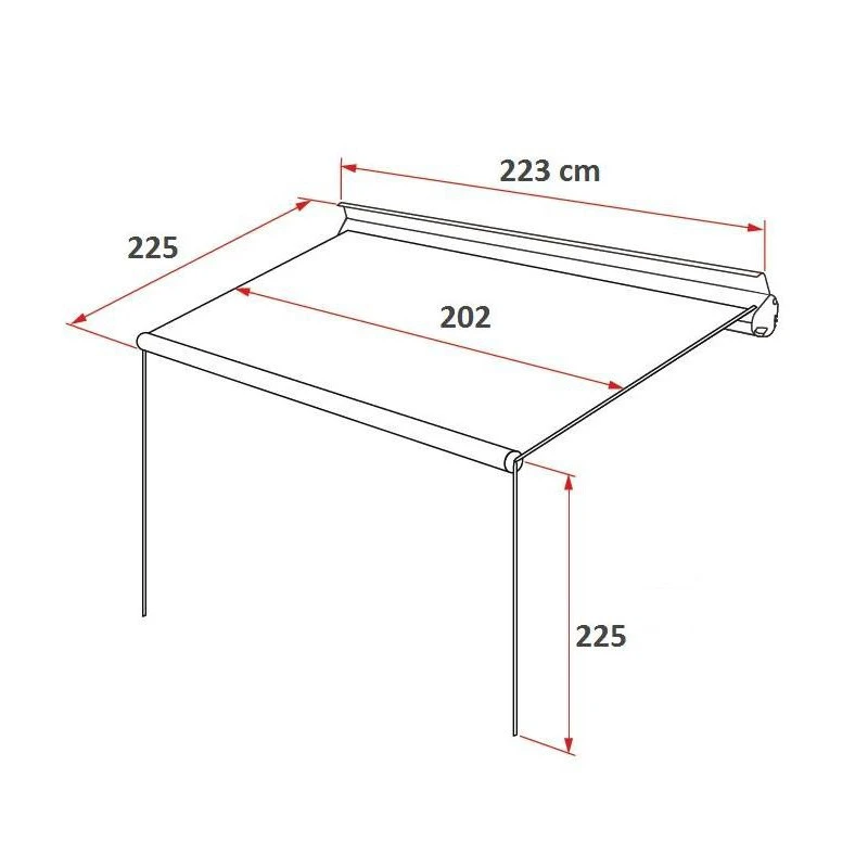 Caractéristiques techniques du store de toit petit fourgon aménagé FIAMMA F35 Pro 220 :