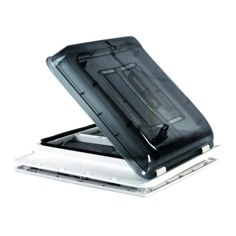 2 couleurs de cadre intérieur vous sont proposés : crème ou blanc et son couvercle extérieur est disponible en Cristal transparent mais vous pouvez aussi le choisir en blanc opaque. En plastique anti-UV résistant le lanterneau FIAMMA possède également une aération permanente, idéal pour l’aménagement de votre fourgon.