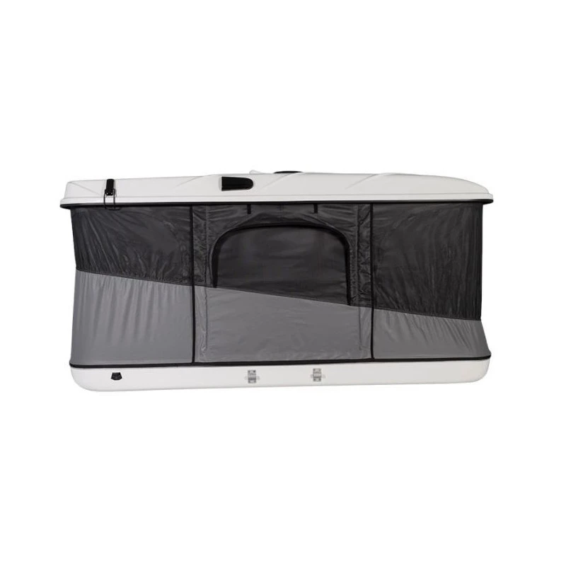 La tente de toit de JAMES BAROUD possède, comme toutes les autres, une coque en fibre de verre ainsi qu’une toile en polyester. Elle s’ouvre facilement grâce à ses puissants vérins. Une fois ouverte, sa toile polyester offre une vision panoramique vers l’extérieur pour profiter pleinement de votre séjour. Sa toile polyester est imperméable à l’eau mais perméable à l’eau.