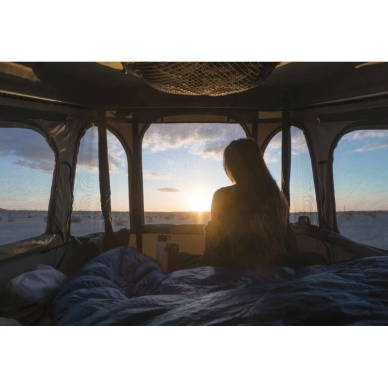 Le Grand Raid de JAMES BAROUD est le must-have de la tente de toit : une tente spacieuse, bien équipée avec des options supplémentaires pour agrémenter et simplifier votre séjour que vous soyez en 4×4, en van aménagé ou fourgon.