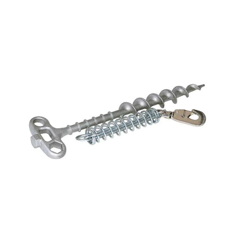Cet équipement pour camping-car et camping est livré en plus avec un amortisseur ressort avec mousqueton permettant à l’animal de ne pas se blesser en absorbant progressivement la force. L’amortisseur permet aussi au piquet de mieux tenir dans le sol en évitant les gros coups de tirage.