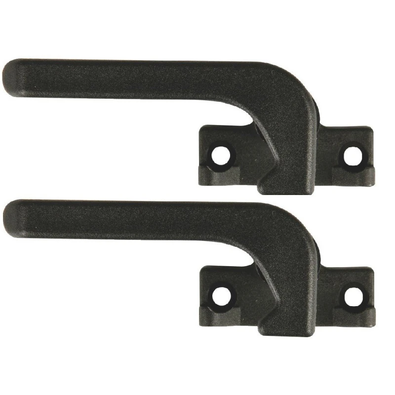 Verrous vendus par paire, fermetures de rechange pour baie & fenêtre de camping-car de certaines gammes PLASTOFORM, modèle noir avec entraxe de 35 mm, sans bouton.
