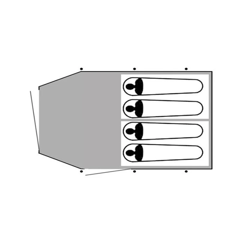 – Membrane extérieur (toit) : Nouveau tissu Ripstop Polyester 210T, PU + double traitement anti UV, étanche à une colonne d’eau de 2000 mm