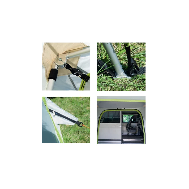 Auvent latéral pour fourgon aménagé de qualité à grand volume, le Premium Quick de REIMO est fabriqué en tissu polyester Ripstop offrant une robustesse et une finition impeccable.