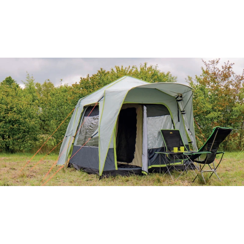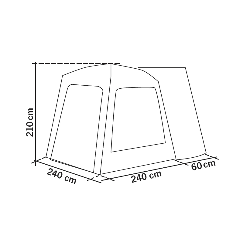 Le Premium Quick de chez REIMO possède également une chambre intérieure qui peut être disposée à gauche comme à droite. Muni de fenêtres en PVC et de moustiquaires, le Premium Quick s’installe à l’aide d’une armature rigide et d’un système d’haubanage permettant une tension parfaite de la toile.