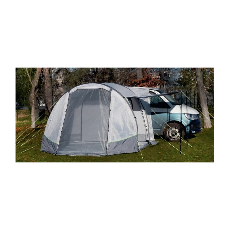 Sa large ouverture frontale vous permettra d’utiliser la porte en guise de pare-soleil si vous y installer des piquets additionnels. En option, il est également possible d’y ajouter une chambre intérieure pour transformer votre auvent en toile de tente et ainsi pouvoir y dormir confortablement.