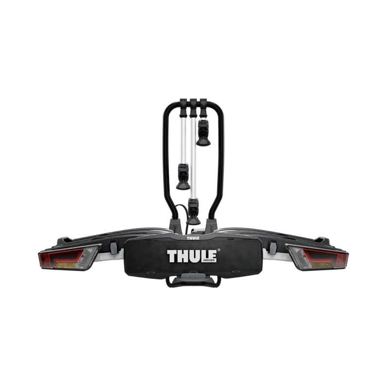 Porte-vélos de la marque THULE, le modèle EasyFold XT 3 peut accueillir jusqu’à 3 vélos : VTT, électriques ou enfants. A disposer sur votre boule d’attelage à l’arrière de votre van ou fourgon aménagé, il est également entièrement pliable.