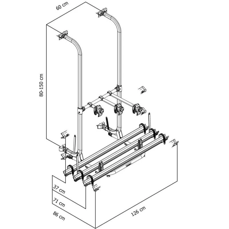 D’une qualité de fabrication irréprochable par THULE, ce porte-vélos camping-cars a été spécialement développé pour les véhicules de marque DETHLEFFS, CARADO et SUNLIGHT. Ils s’installe directement sur les rails de la paroi arrière avec sa structure télescopique verticalement de 80 à 150 cm de long.