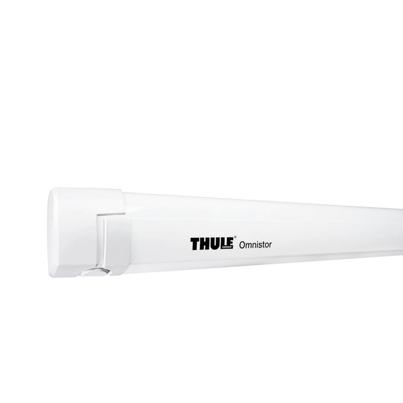 Store extérieur de la marque THULE Omnistor présenté dans une longueur de 5 mètres, ce store banne haut de gamme est robuste et particulièrement indiqué pour les camping-cars de grande longueur.