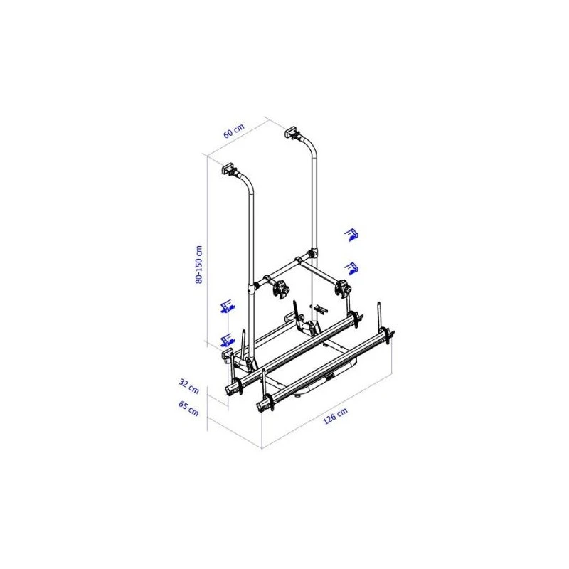 Ce modèle Standard à un entraxe en hauteur réglable grâce aux tubes télescopique : de 80 à 150 cm permettant donc d’installer le porte-vélos si une baie arrière est présente. Si cet entraxe ne convient pas pas, la marque Suédoise propose un modèle « Short » (compact) avec entraxe de 40 à 70 cm (voir ici). Pour encore plus d’universalité, les rails à vélos sont coulissants sur le cadre afin d’être déportés.